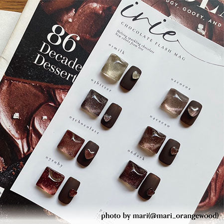 Heat with UV light or UV/LED light (hybrid light, etc.). UV... 6seconds, UV/LED... 3seconds. Melty, sparkling chocolate color