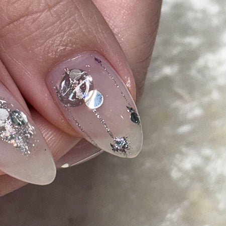 It is an embossed holo of 0.6 to 0.4 mm. It has a slightly three-dimensional feel, so it has more presence than regular holo. It is also good to layer a sheer color on top of the holo to give depth to the art.