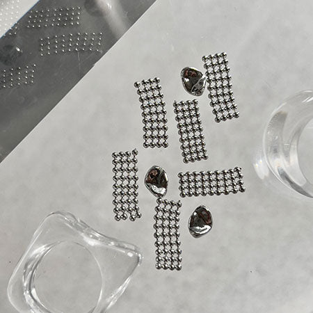 This silver part mix includes three large ball chain sheets (two metallic silver sheets and one white silver sheet) measuring approximately 17mm and five 7mm silver parts.